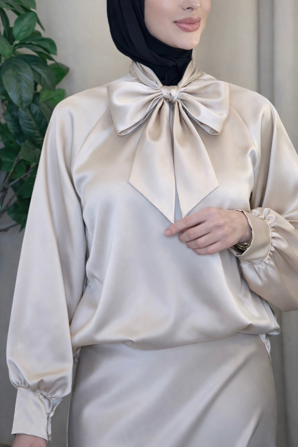 Satijnen strikblouse elegant, comfortabel & tijdloos 💫