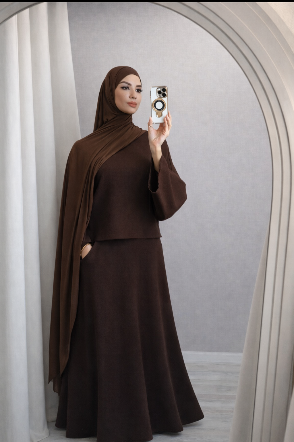 Goedemiddag allurah😘bedank voor het moooie bruine seude rok..die is zacht en mooie kwaliteit. En ik vindt allurah een prachtig vrouw, als zij live is past ze de kleding dat je een voorbeeld kan krijgen Van de outfit. top service en lieve zachte vrolijk vrouw.🙏